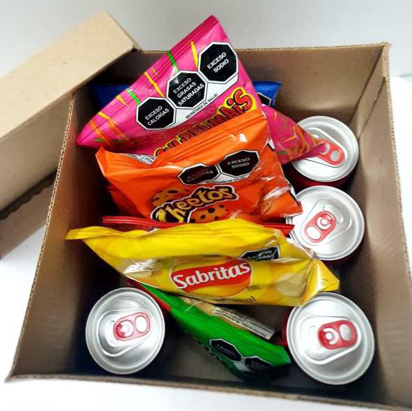 4 Coca Cola 235ml, 1 gomitas, 1 Sabritas, 1 chetos, 1 churrumais, 2 Botanitas.