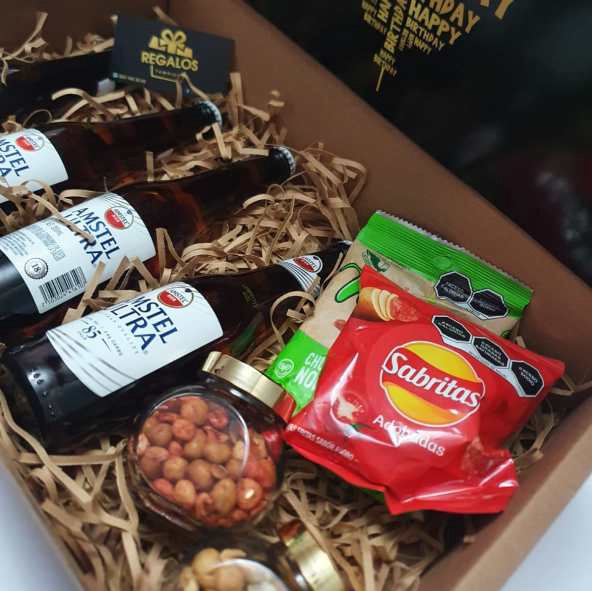 4 Cervezas Ultra 355ml, 2 Frascos botaneros, 1 Sabritas adobadas, 1 Churritos.